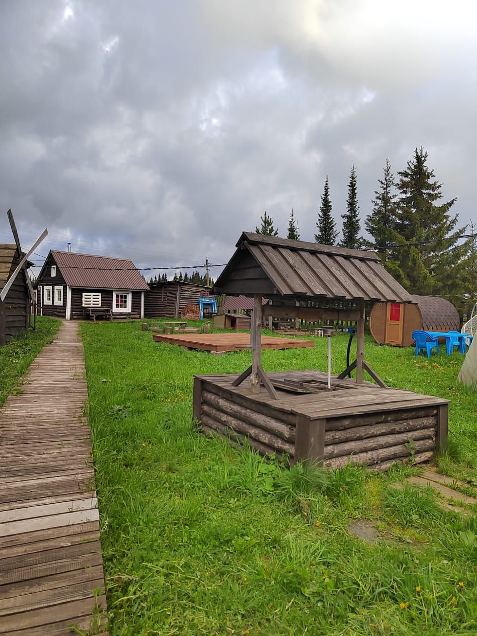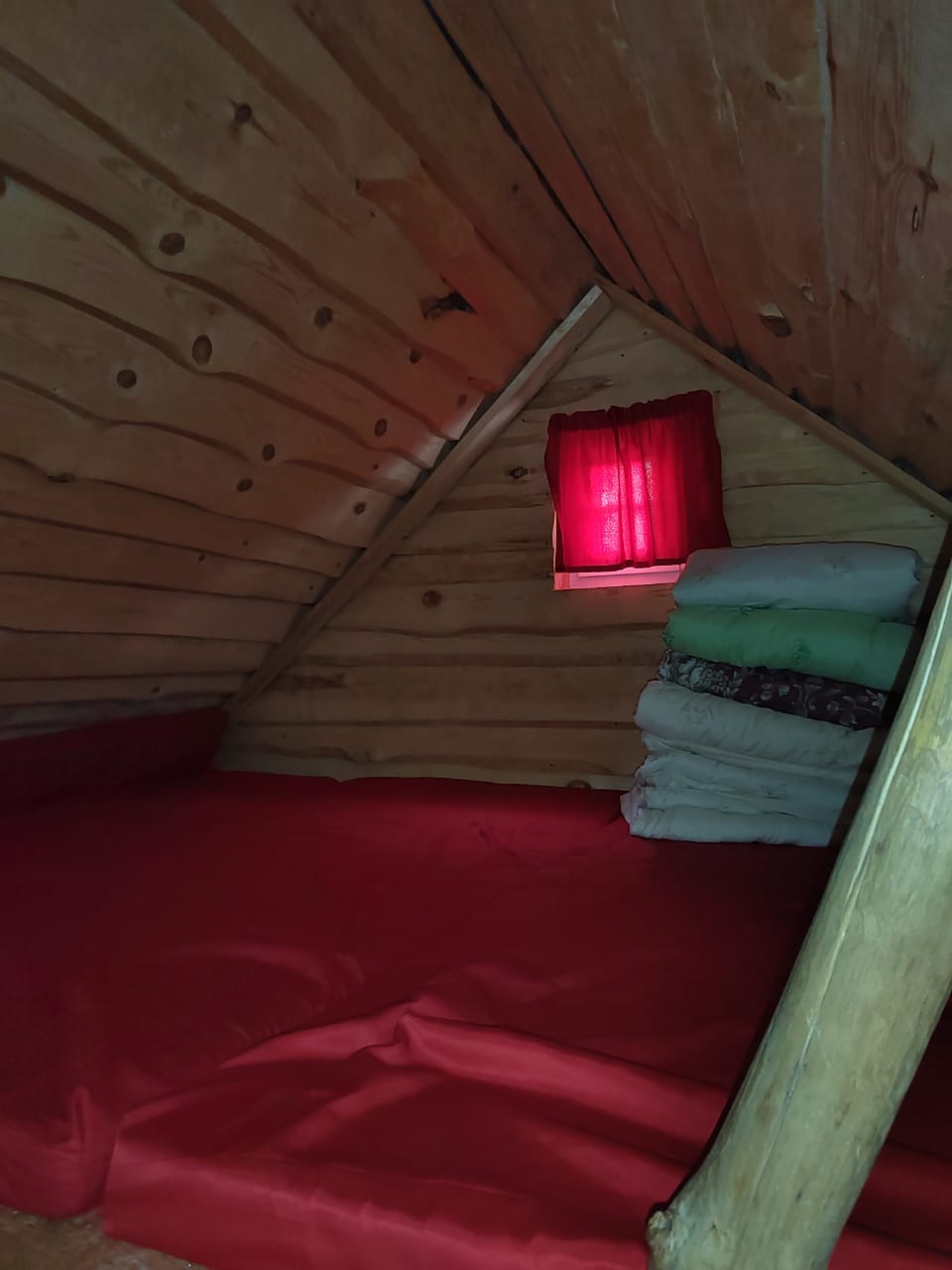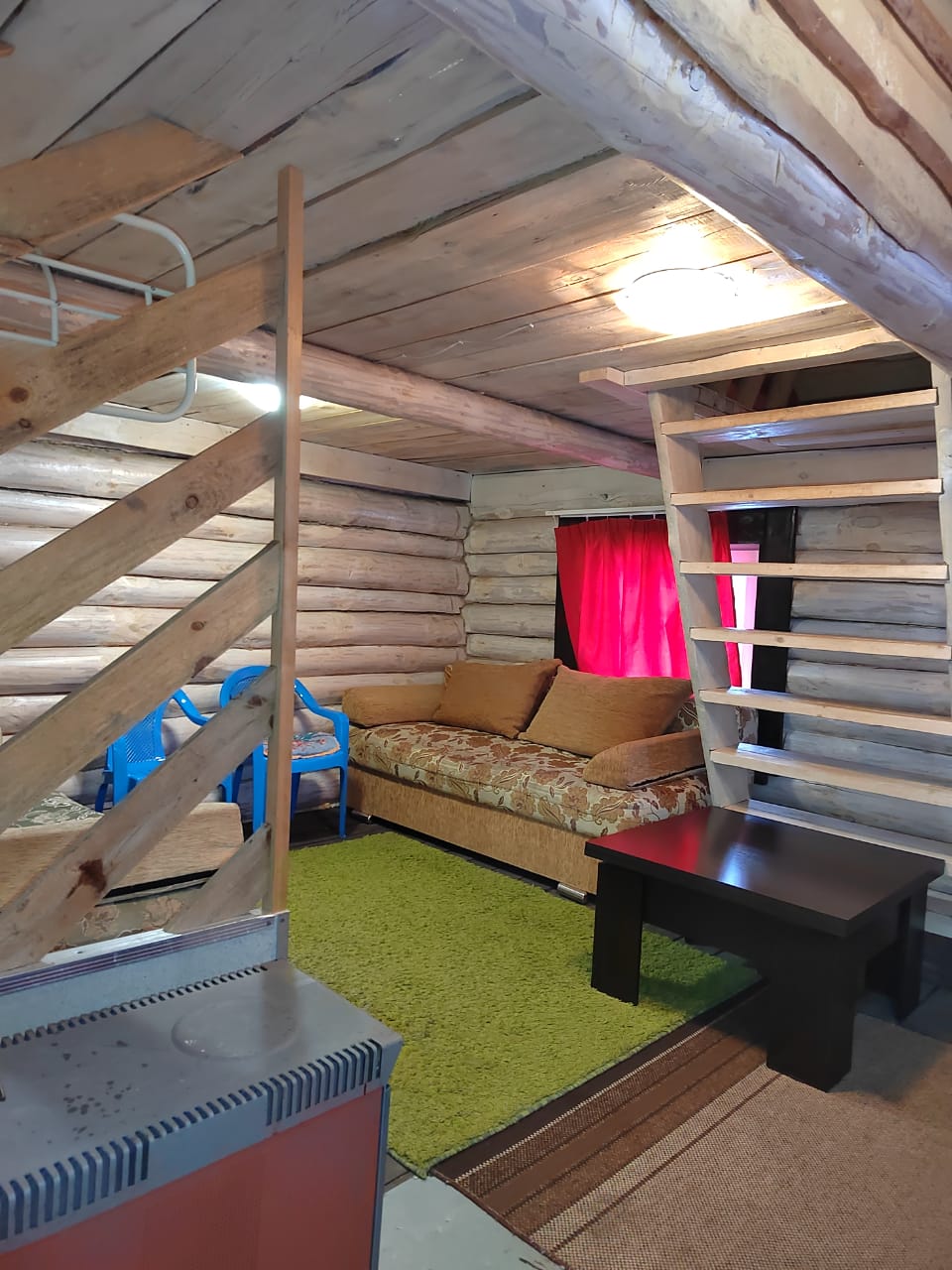 Дом с печкой внутри и вторым мансардным этажом. на первом этаже два дивана, кухонная зона . Дом оборудован всем необходимым для комфортного проживания (посуда, холодильник, чайник, умывальник с подогревом, стол раскладной. В мангальной зоне есть газовая плита, питьевая вода со скважины. Туалет на улице.