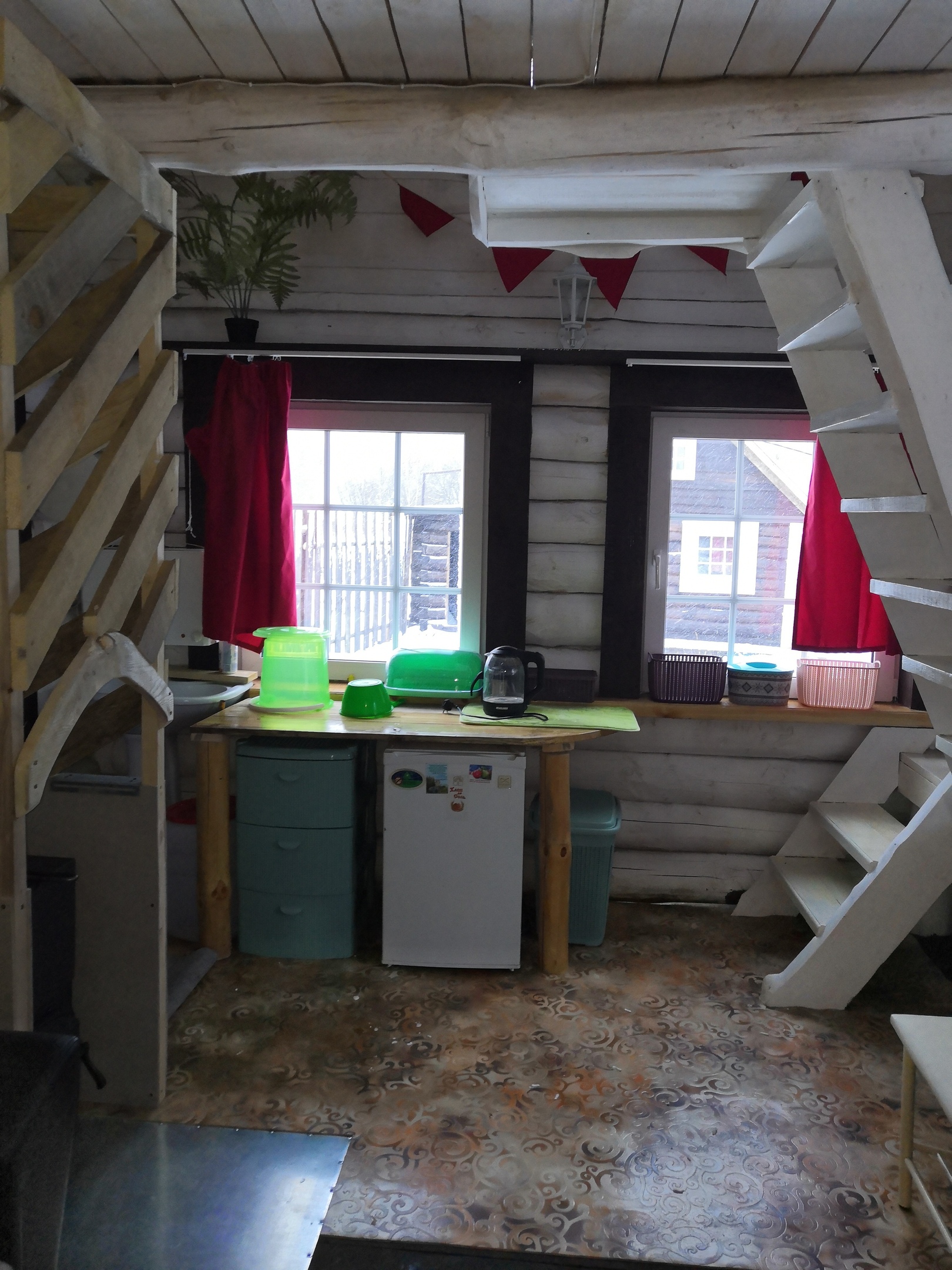 Дом с печкой внутри и вторым мансардным этажом. Дом оборудован всем необходимым для комфортного проживания (посуда, холодильник, чайник, умывальник с подогревом. Туалет на улице. В мангальной зоне есть питьевая вода, газовая плитка.